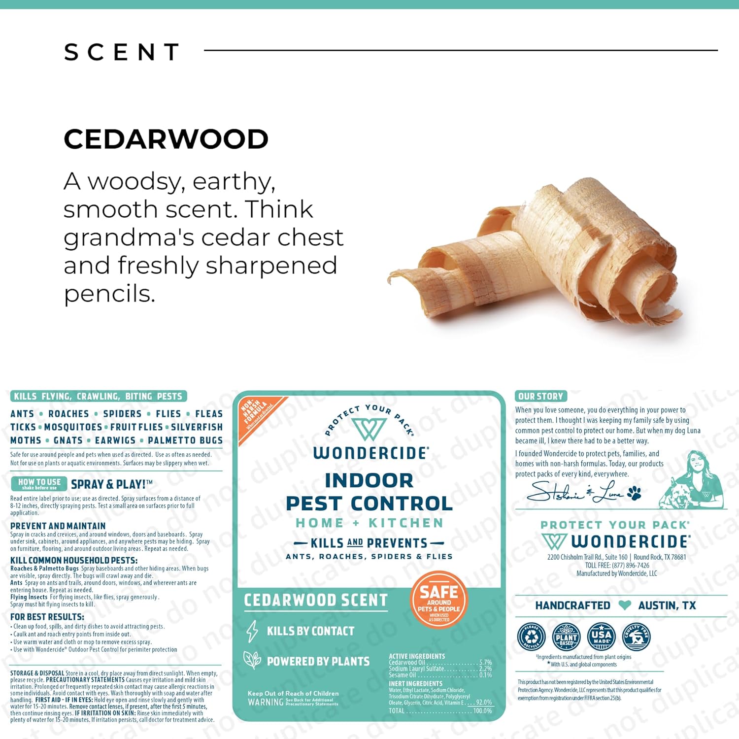 Wondercide - Indoor Pest Control Spray for Home and Kitchen - Ant, Roach, Spider, Fly, Flea, Bug Killer and Insect Repellent - with Natural Essential Oils - Pet and Family Safe — Cedarwood 128 oz