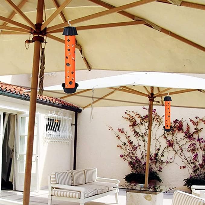 - Multiple Ways to Attract Flies: In addition to using the bright yellow color of the product to attract flies, we can also add some bait such as: honey, sugar, wine, apple cider vinegar in the small tray at the bottom to attract flies.