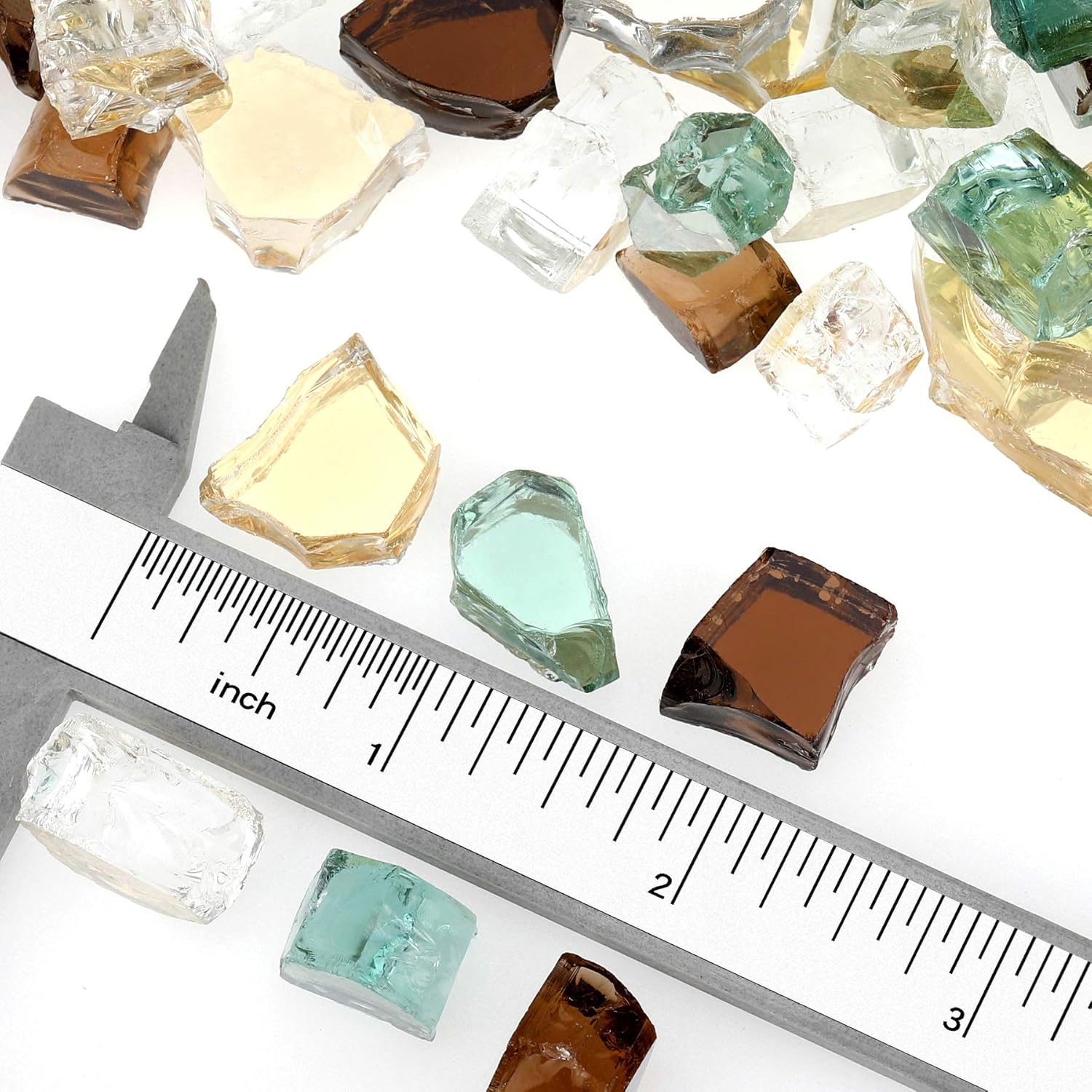 Mr. Fireglass 10 Pounds Blended Fire Glass - 1/2 Inch Mixed Colored High Luster Reflective Tempered Glass Rocks for Fireplace Fire Pit Table Fireplace and Landscaping, Copper+Gold+Light Green