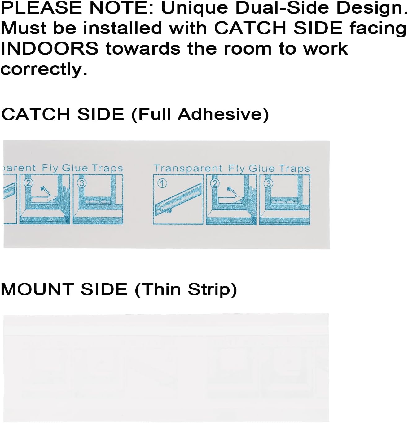 - Clean and Transparent - It will not affect the light transmittance of window, and not easily be spotted by the flies. -PLEASE NOTE: Unique Dual-Side Design. Must be installed with CATCH SIDE facing INDOORS towards the room to work correctly.
