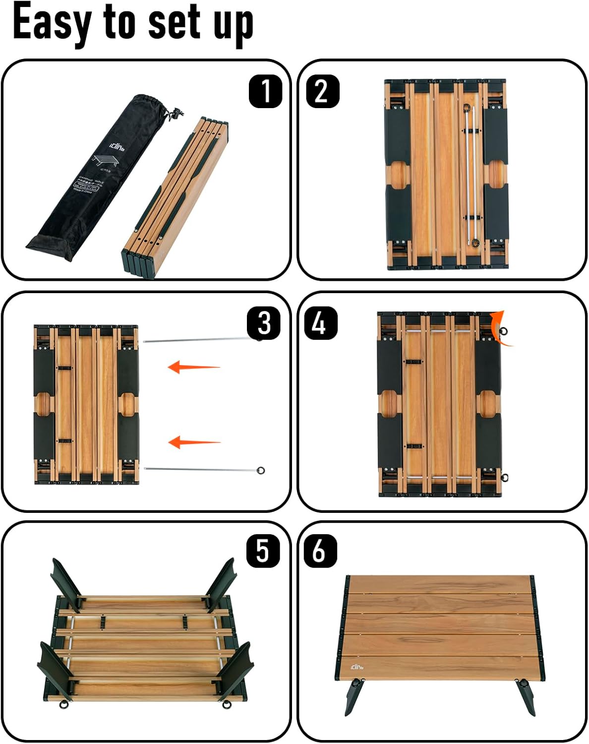 - Compact, packed size 22.4 ร 3.78 ร 2.36 inches; carry bag included, easy to carry everywhere; Very easy to set up, just open the base frame and fix them with the bars, enjoy your leisure time in seconds; Perfect height and size for drinks and snacks when relaxing on your camping chairs, have a picnic in the garden, as a beach table, go fishing, have breakfast on the bed.
