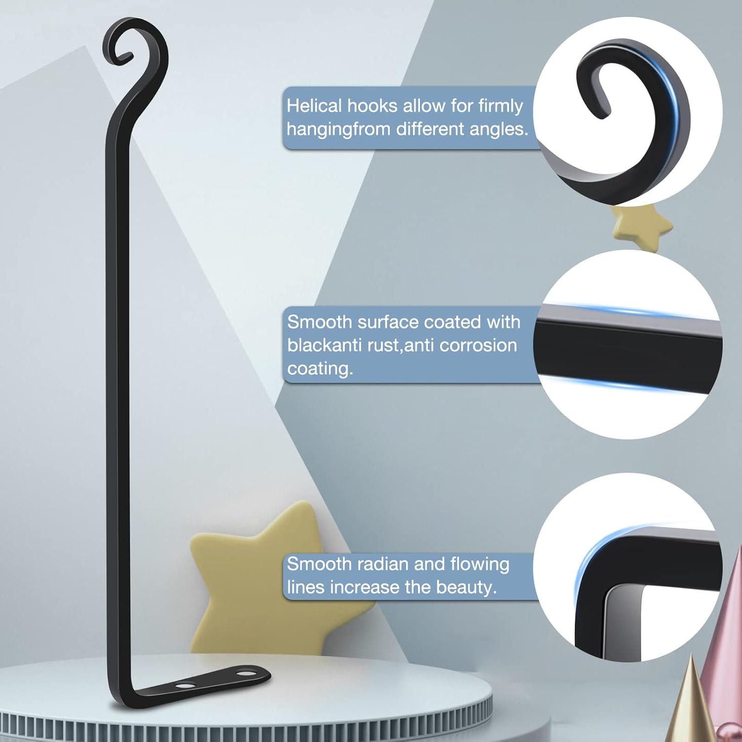 Gtongoko 2 Pack 15 Inch Plant Hangers Outdoor Metal, Plant Hooks for Wall Indoor, Outdoor Hooks for Hanging Bird Feeders, Plant Bracket, Lanterns, Wind Chinme, Black
