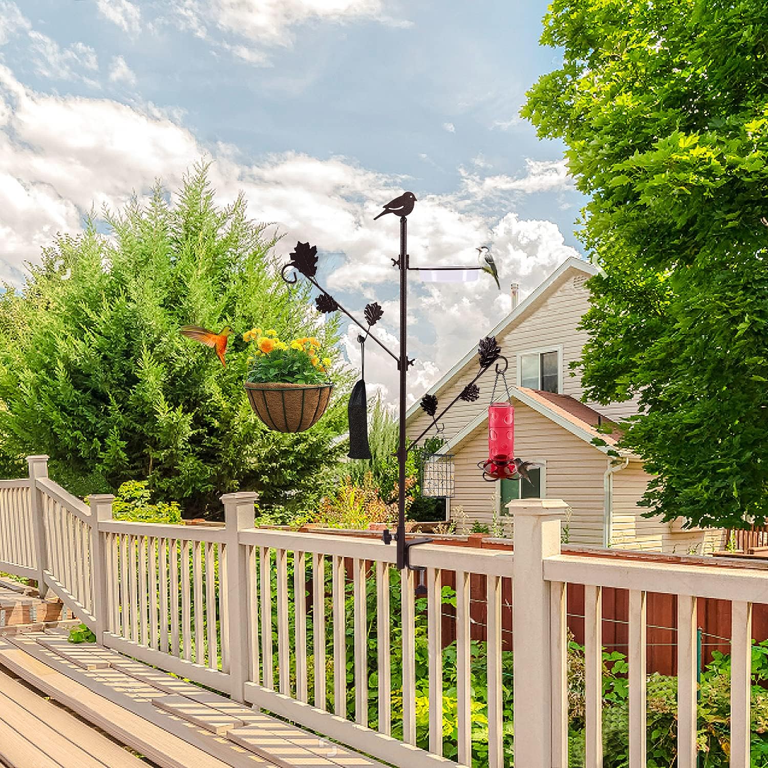 - Deck Hook Size: This deck multi-hook bird feeder pole size is 26.4 W x42" H.It can be clamped to any horizontal deck rails up to 2.36 inches thick.