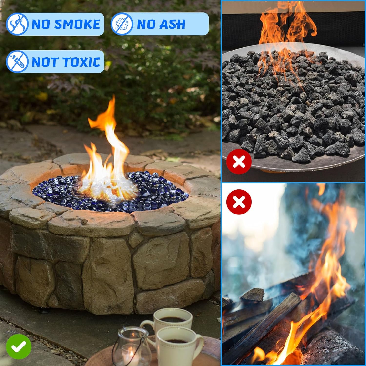 - 【Safety】Fire glass are thermally tempered to withstand extreme temperatures and guaranteed not to burst, smoke or fade.