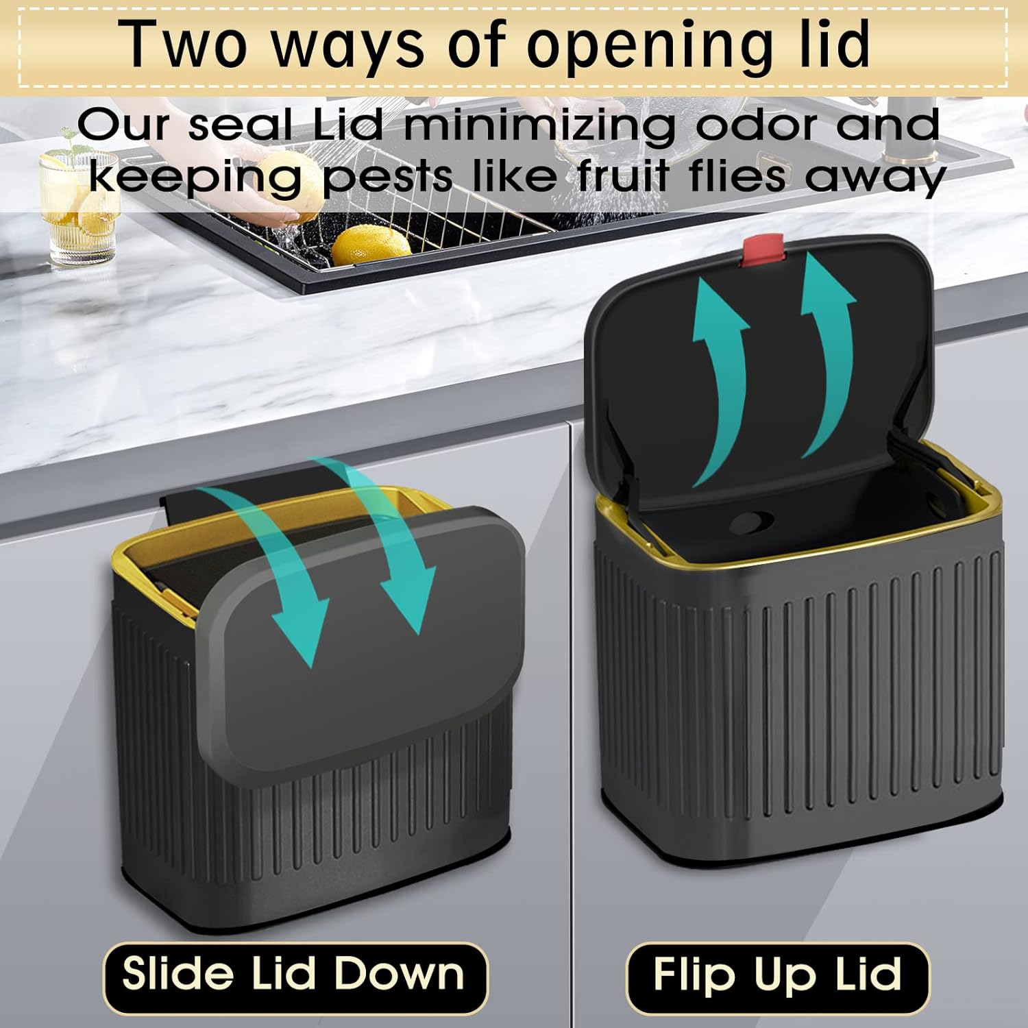 - Durable Material & Odor Sealing: GloDeals trash can with lid crafted from premium stainless steel and high-density plastic, effectively isolating odors and preventing fruit flies. Rust-proof, crack-resistant, and fingerprint-proof, this countertop compost bin ensures a clean and tidy kitchen environment.