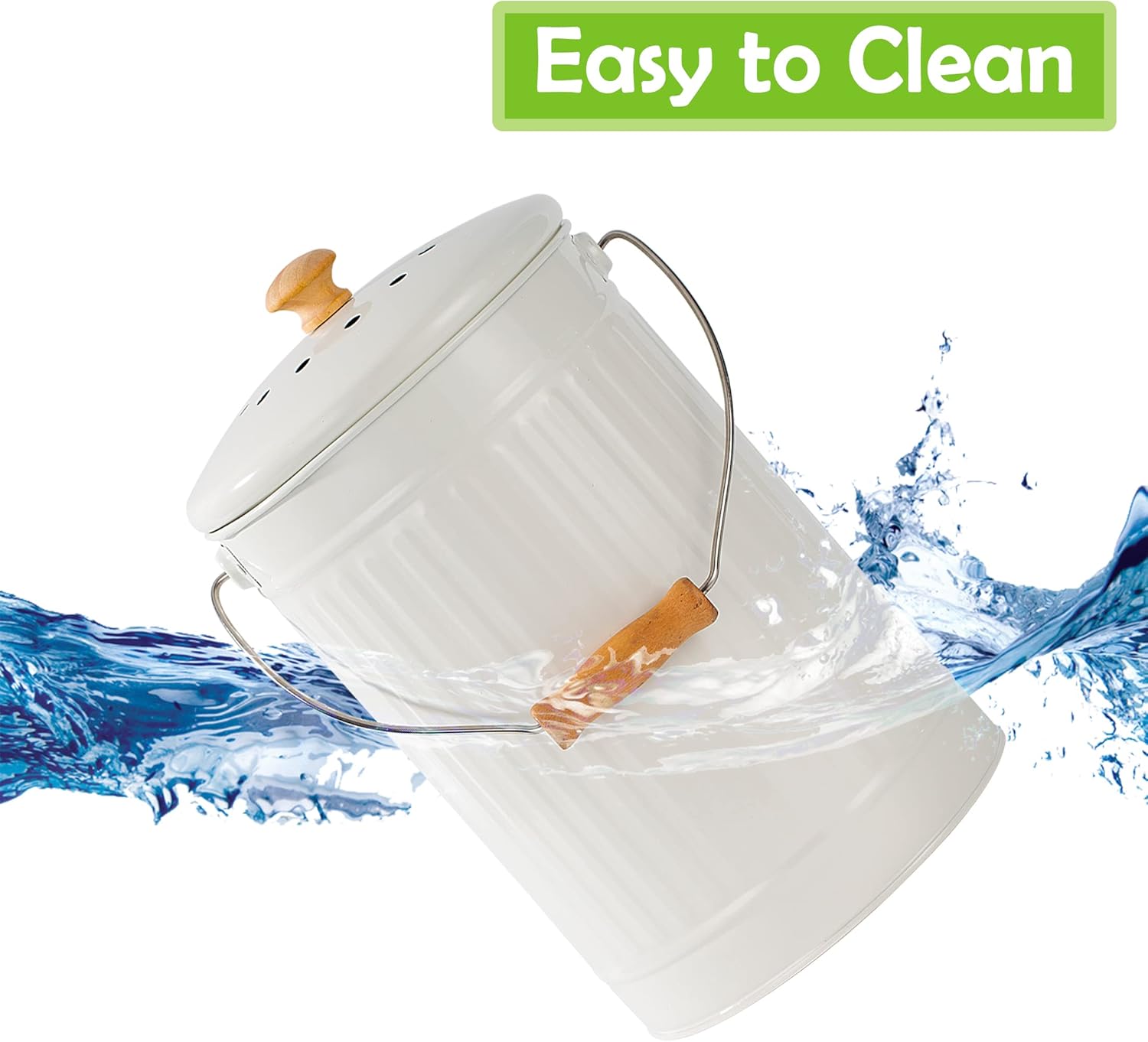 - 🗑100% RUST PROOF COMPOST BUCKET: This tabletop compost bin is made of metal and painted, the smooth finish prevents rusting and is very easy to clean.