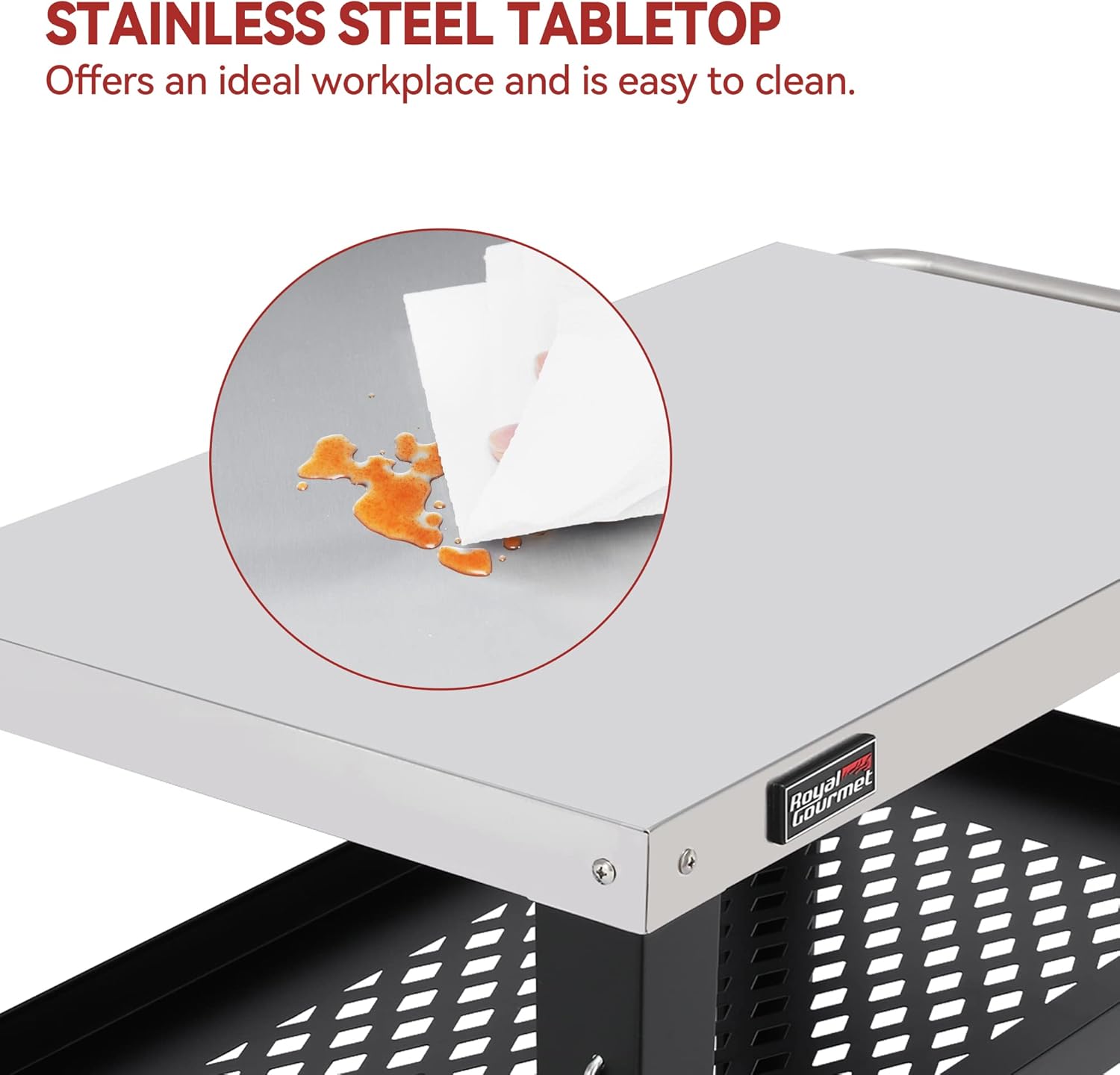 - Multipurpose Worktop: Made from stainless steel, the 34" L x 20" W tabletop facilitates an ideal workplace to serve both indoor and outdoor cooking needs, like preparing food aside when cooking