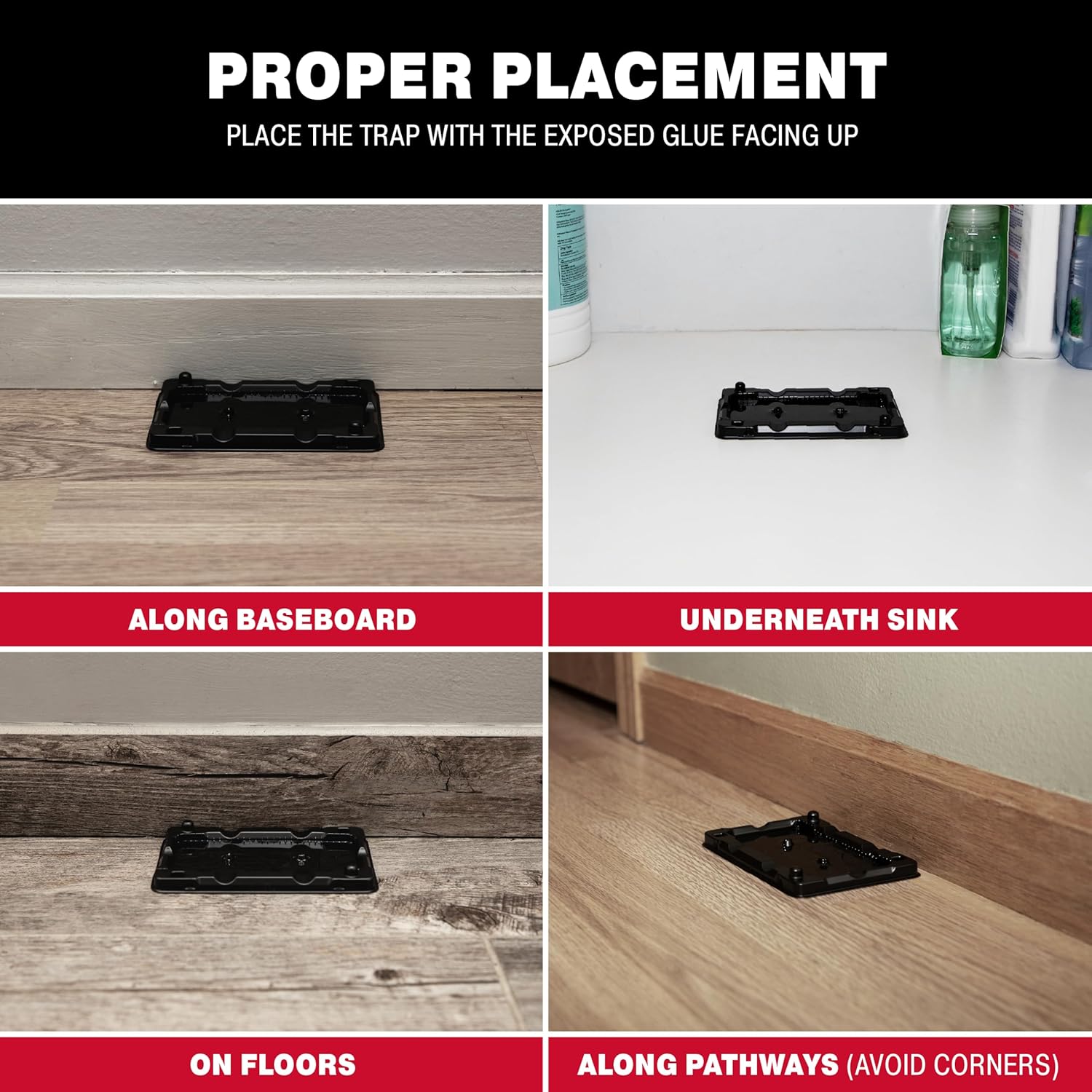 - READY TO USE: Mouse and Insect Glue Traps attract mice, crickets, roaches & crawling pests. Separate traps from each other & place the sticky traps along known or suspected insect pathways. For best results, do not add bait as it decreases the effectiveness of the trap.