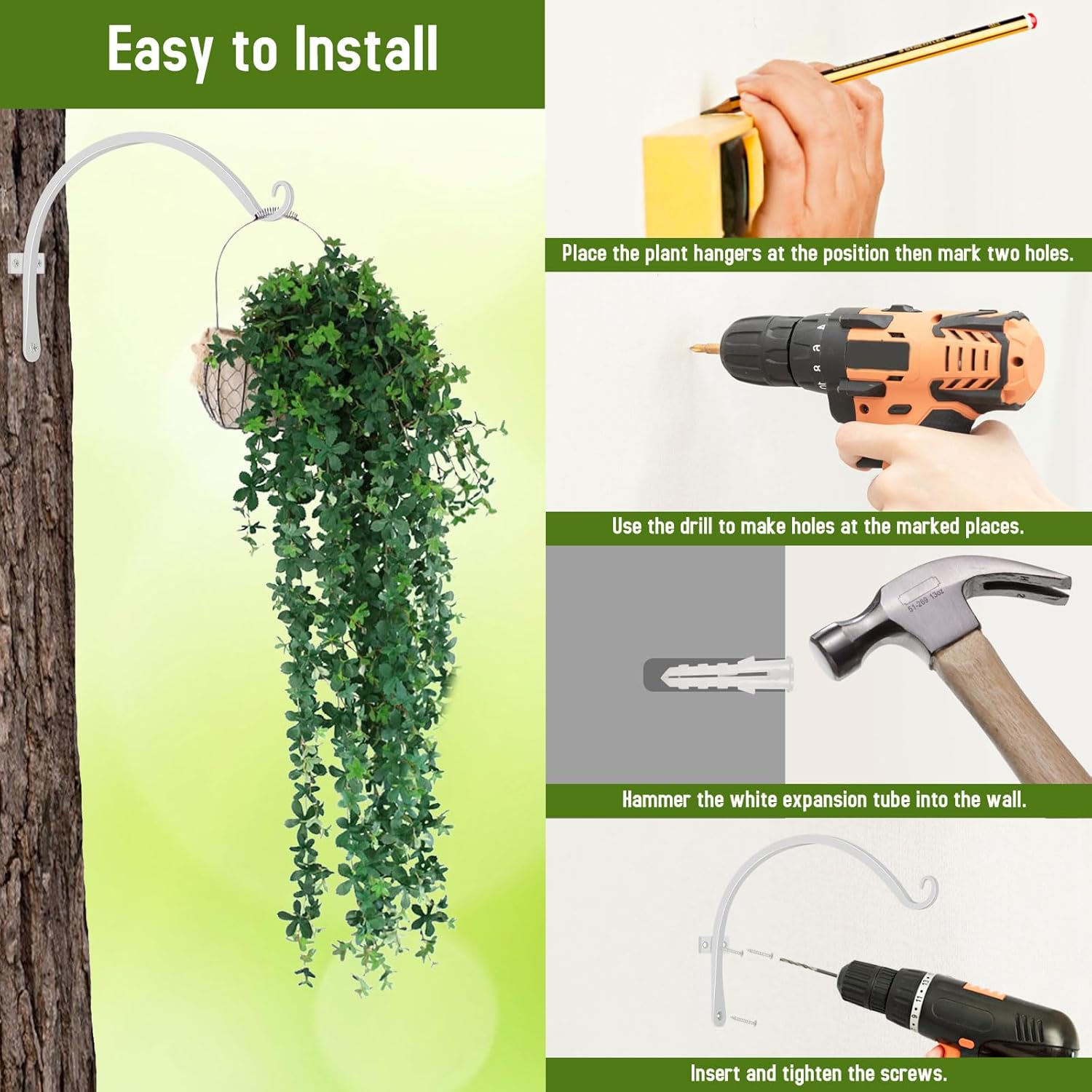 - 【MUTI-PURPOSE】A very useful indoor or outdoor decoration tool,you can use it to decorate your bedroom,living room,bathroom,entryway,patio,porch,garden,backyard by hanging plant, baskets, mason jar lights, string lights, wind chimes, bird feeder and so on.