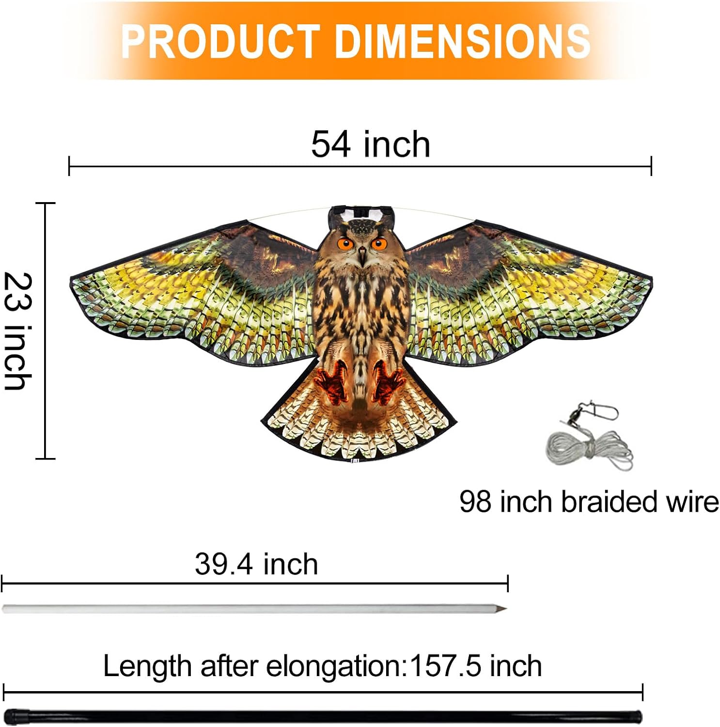 Bird Hawk Flying Kite with Pole Crop Protector Bird Scare Kites with 4m Pole - Owl Kite