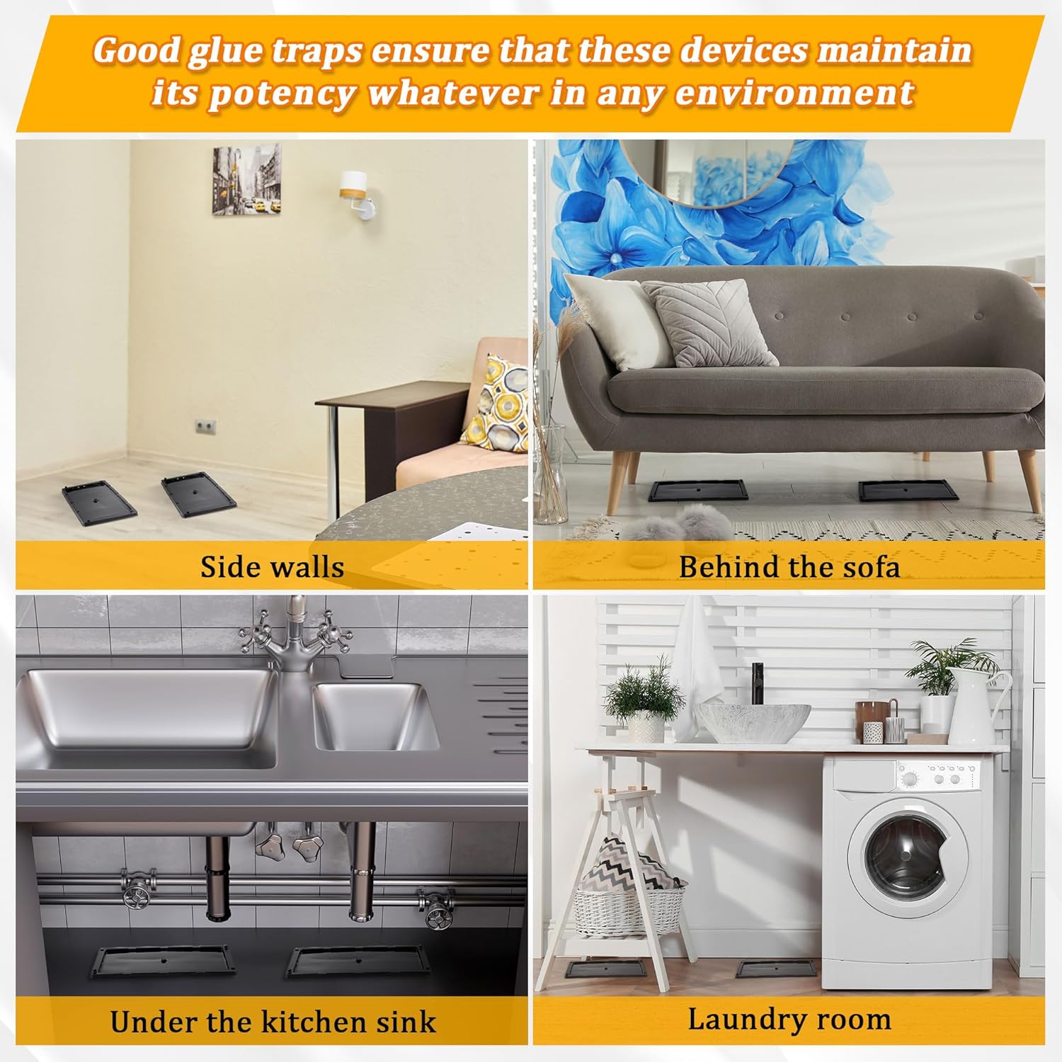 - Ready To Use: rat glue traps are pre scented and are intended for use without additional bait; Simply place 2 sticky mouse trap apart in areas frequented by rats, snake, roaches, scorpions rodents or insects; You can simply carry the glue traps to the bin and no need to physically contact with the mouse corpse; Using these sticky traps for mice and rats will help you achieve an effective result