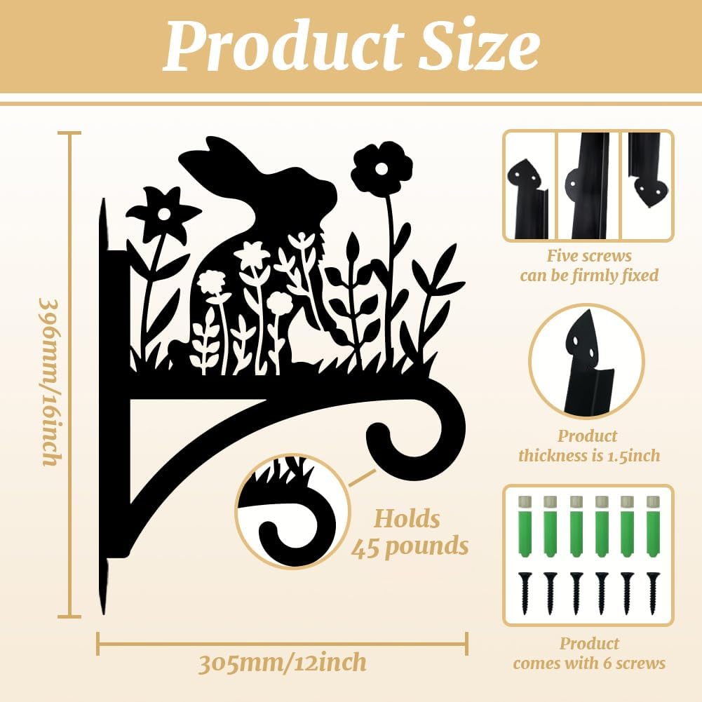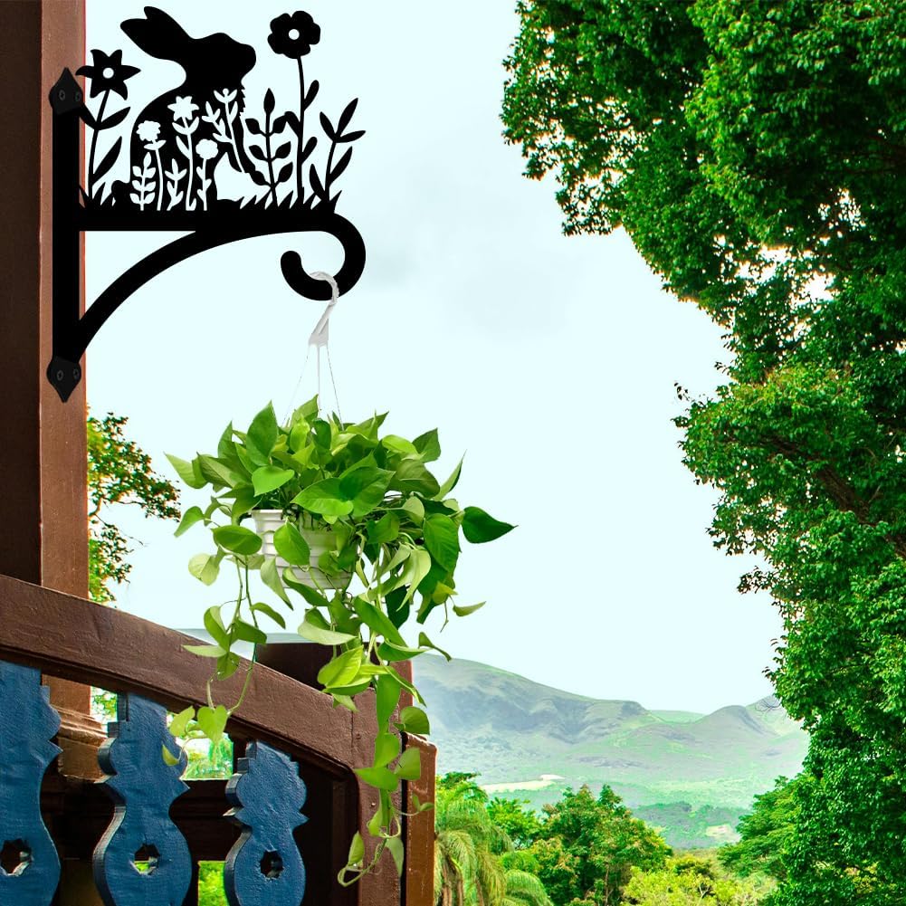 Peacoblue Iron Plant Hangers Hooks for Outdoor Indoor Hanging Plants Flower Fern Pots, Lantern, Bird Feeder, Wind Chimes, 12”x14” Weather Resistant Metal Wall Holder for Porch Garden Farmhouse(Rabbit)