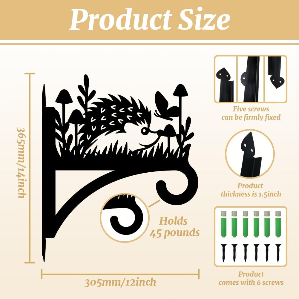 peacoblue Iron Plant Hangers Hooks for Outdoor Indoor Hanging Plants Flower Fern Pots Lantern Bird Feeder Wind Chimes, 12”x14” Weather Resistant Metal Wall Holder for Porch Garden Farmhouse(Hedgehog)