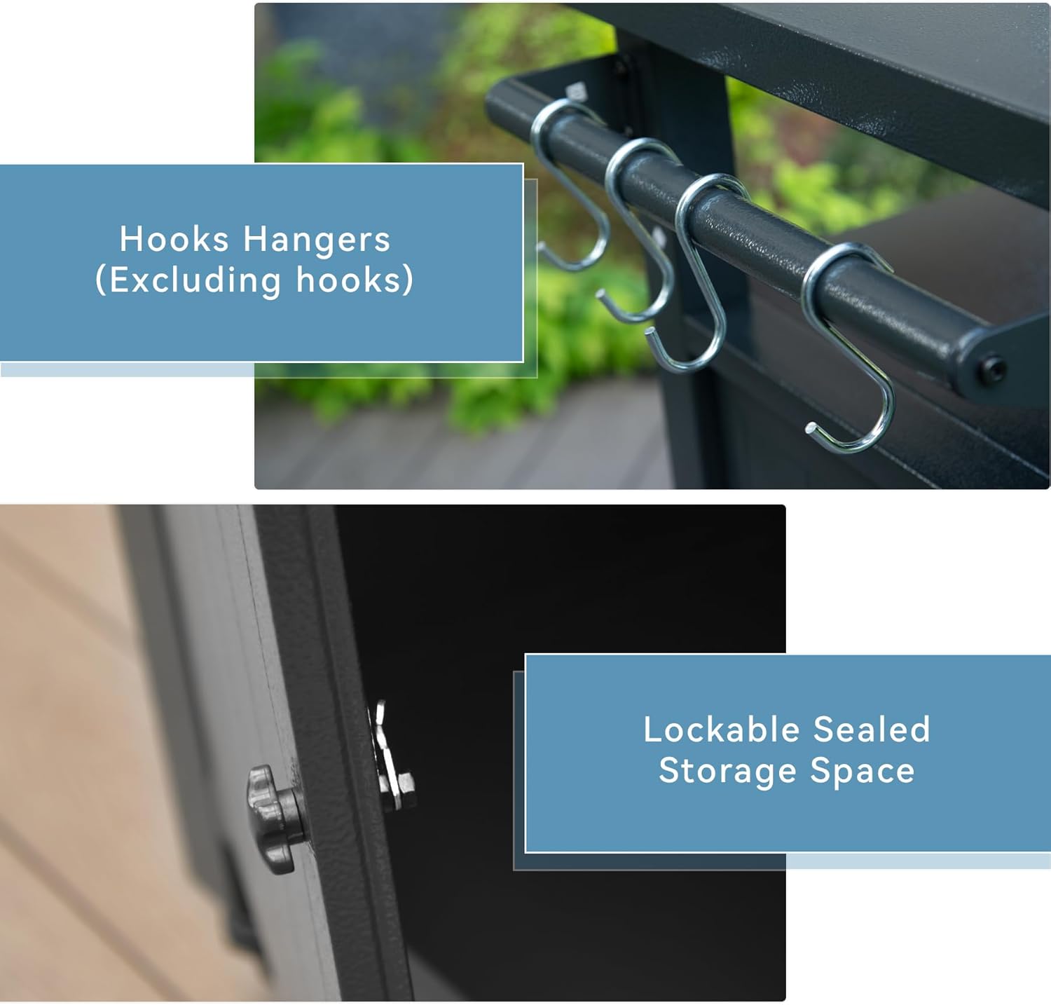 - Versatile design - two sides of grill cart can place paper towel,hook holder, condiments, drinks or barbecue tools, allowing you take them easily during the barbecue. On below of the outdoor grill cart with a cabinet to store your kitchen tools,food,or snacks. Outdoor grill carts with 4 wheels for effortless movement. You can lock the cabinet doors to prevent pests
