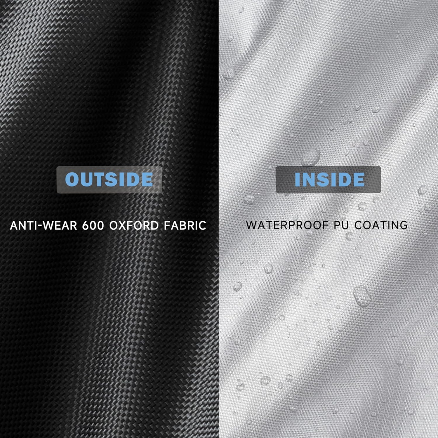 - ANTI-TEAR MATERIAL β Designed to be long lasting, this grill cover is made of high-density 600D oxford fabric with reinforced stitching, which is heavy duty and durable materials that can withstand harsh weather conditions and resist tearing, fading, and other types of damage