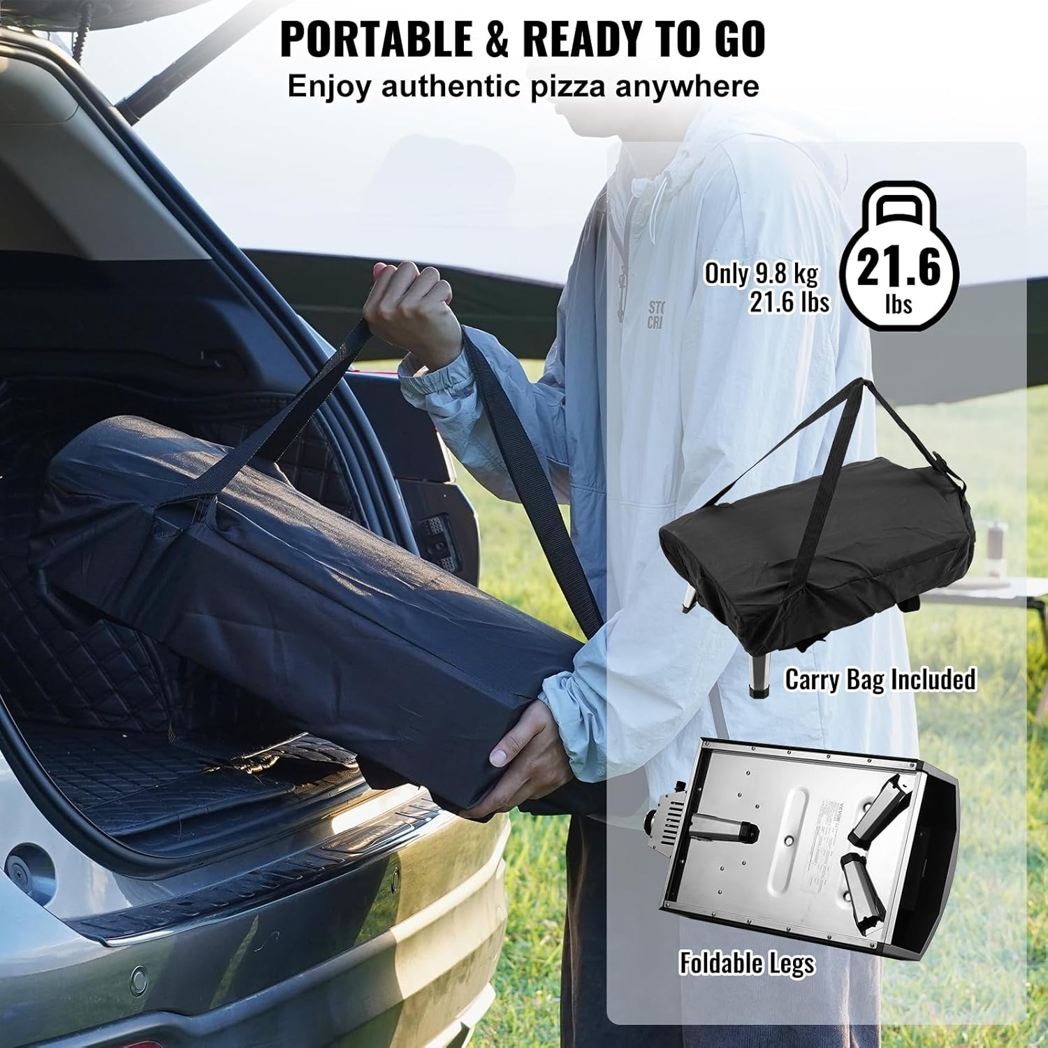 - Exceptional Outdoor Pizza Fun: VEVOR Gas Pizza Oven provides consistent, controllable heat and clean burning for easy cleanup. Ideal for pizza enthusiasts and outdoor cooking lovers. Delivering reliable performance in any weather. It's perfect for backyard parties and camping