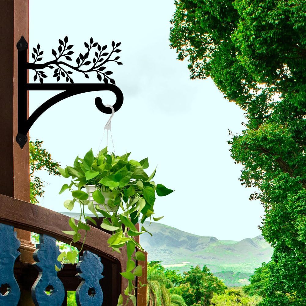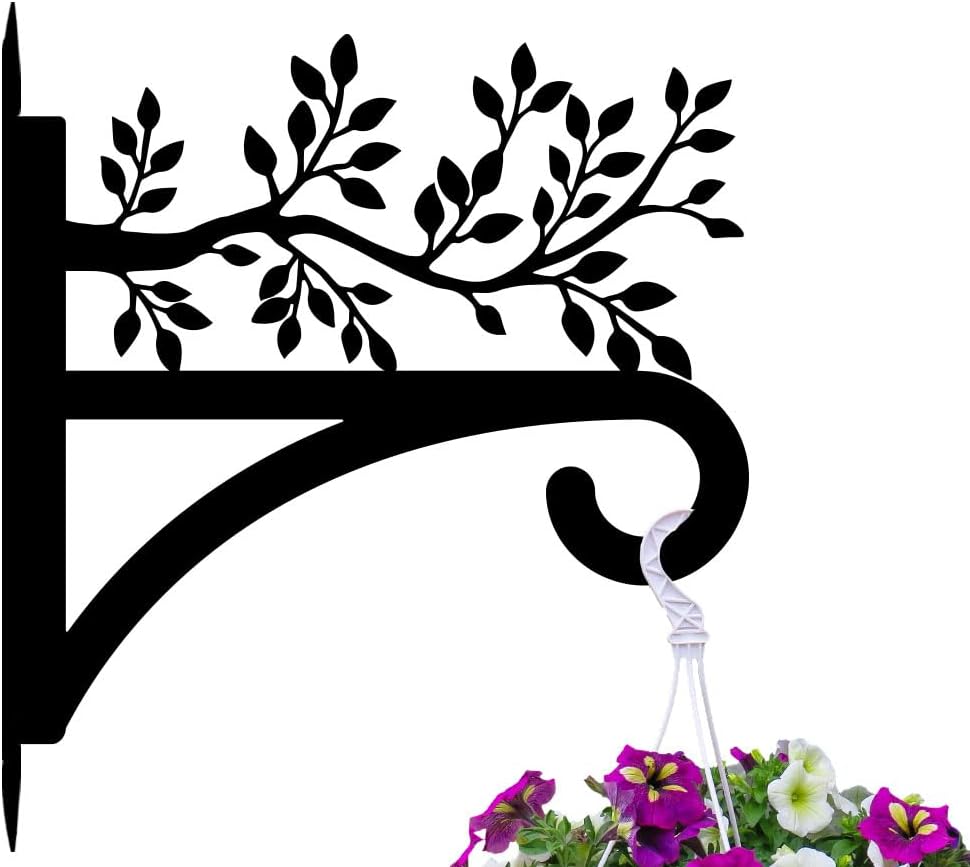 peacoblue Iron Plant Hangers Hooks for Outdoor Indoor Hanging Plants Flower Fern Pots Lantern Bird Feeder, 13"x14" Weather Resistant Metal Wall Holder for Porch Garden Farmhouse(Leaves with Branches)