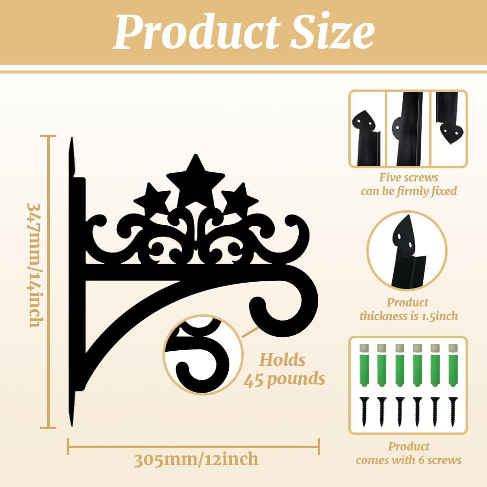 peacoblue Iron Plant Hanger Hook for Outdoor Indoor Hanging Plant Flower Fern Pot Lantern Bird Feeder,12"x14" Weather Resistant Metal Wall Holder for Porch Garden Farmhouse(Five-Pointed Star)