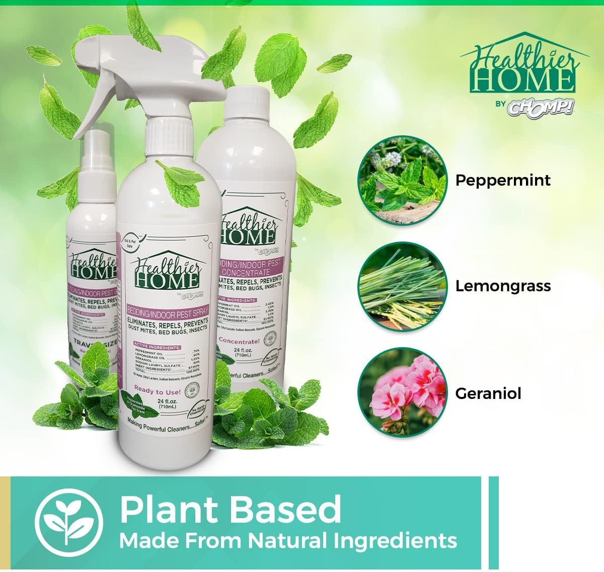 - Made In America With a Minty Fresh Scent - Unlike chemical sprays, essential oil based insect repellent leaves a minty scent from peppermint and lemongrass and is made with Safer Choice ingredients right here in America. Make your house a Healthier Home with CHOMP!
