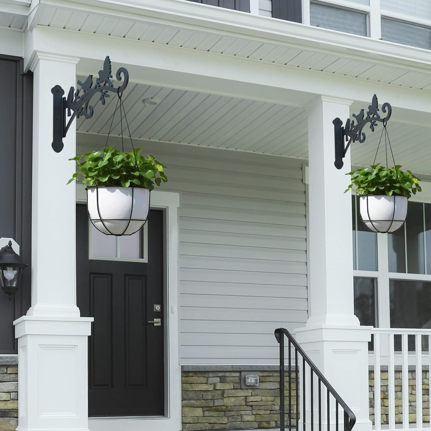 - 【STURDY AND RUST-PROOF】Our flower basket hooks are made of heavy-duty iron iron with a thickness of 3mm for reliable load-bearing capacity, professional anti-rust coating to ensure long-lasting durability, and frosted surface design with smooth edges that won't hurt your hands