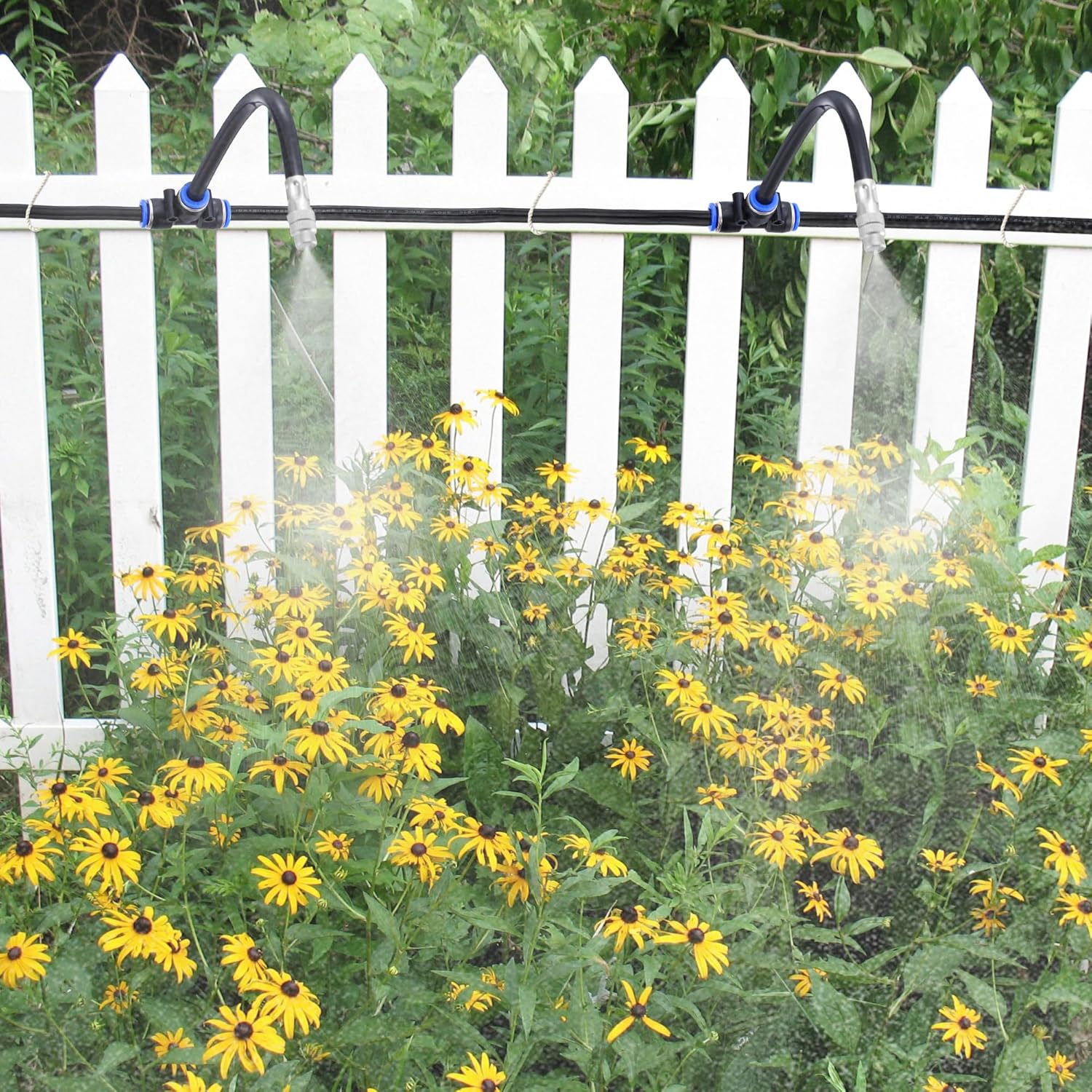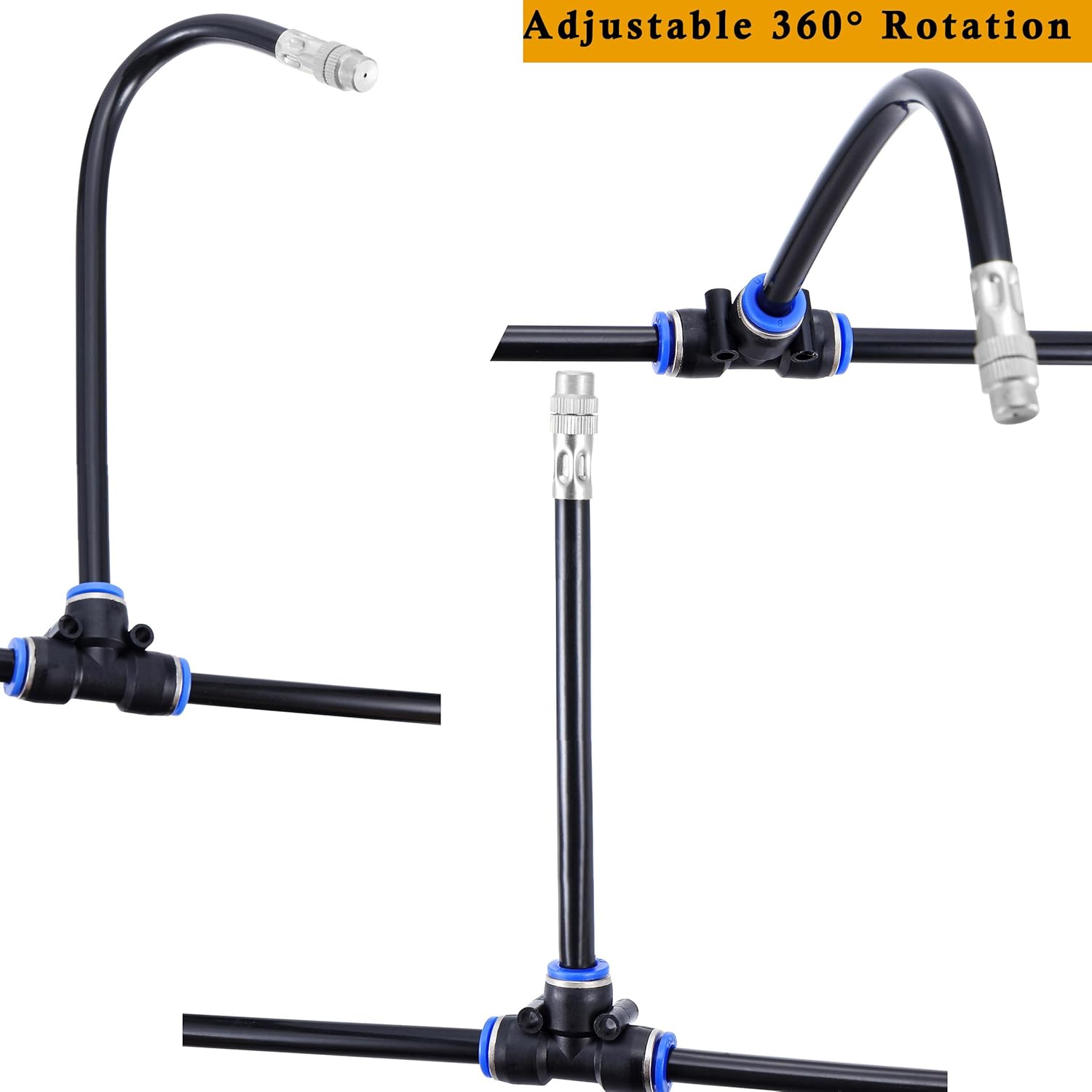 - 【Easy to Install】: Easy to install and disassemble. Tubes can be easily inserted or pulled out by pressing the blue snap button. And by twisting nozzle, you can adjust the water volume. Atomizing Misting Sprayer outer diameter: 0.35inch, orifice diameter: 1.1mm (0.043").