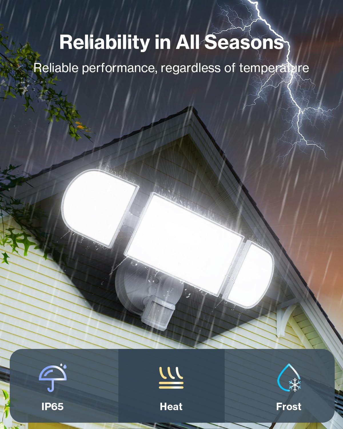 - Built to Last: With an IP65 waterproof rating, these motion detected lights withstand any weather โ rain, snow, extreme temperatures, ensuring reliable performance year-round.