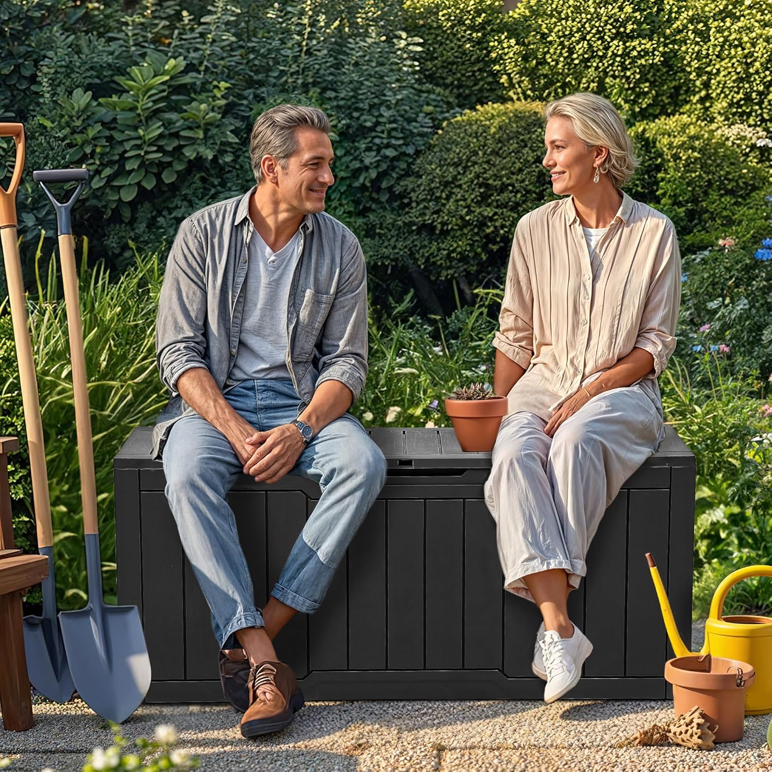 - Built to Last: Crafted from weather-resistant resin, these outdoor deck boxes are waterproof, rust-proof, UV-resistant, and fade-proof, making them ideal for long-term outdoor use in various climate conditions