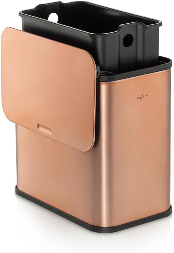 RED FACTOR Stainless Steel Hanging Trash Can with Lid and Inner Bucket – Slim 1.3 Gallon Odor-Free Compost Bin for Kitchen Cabinet, Countertop, Under Sink, or Bathroom (Copper)