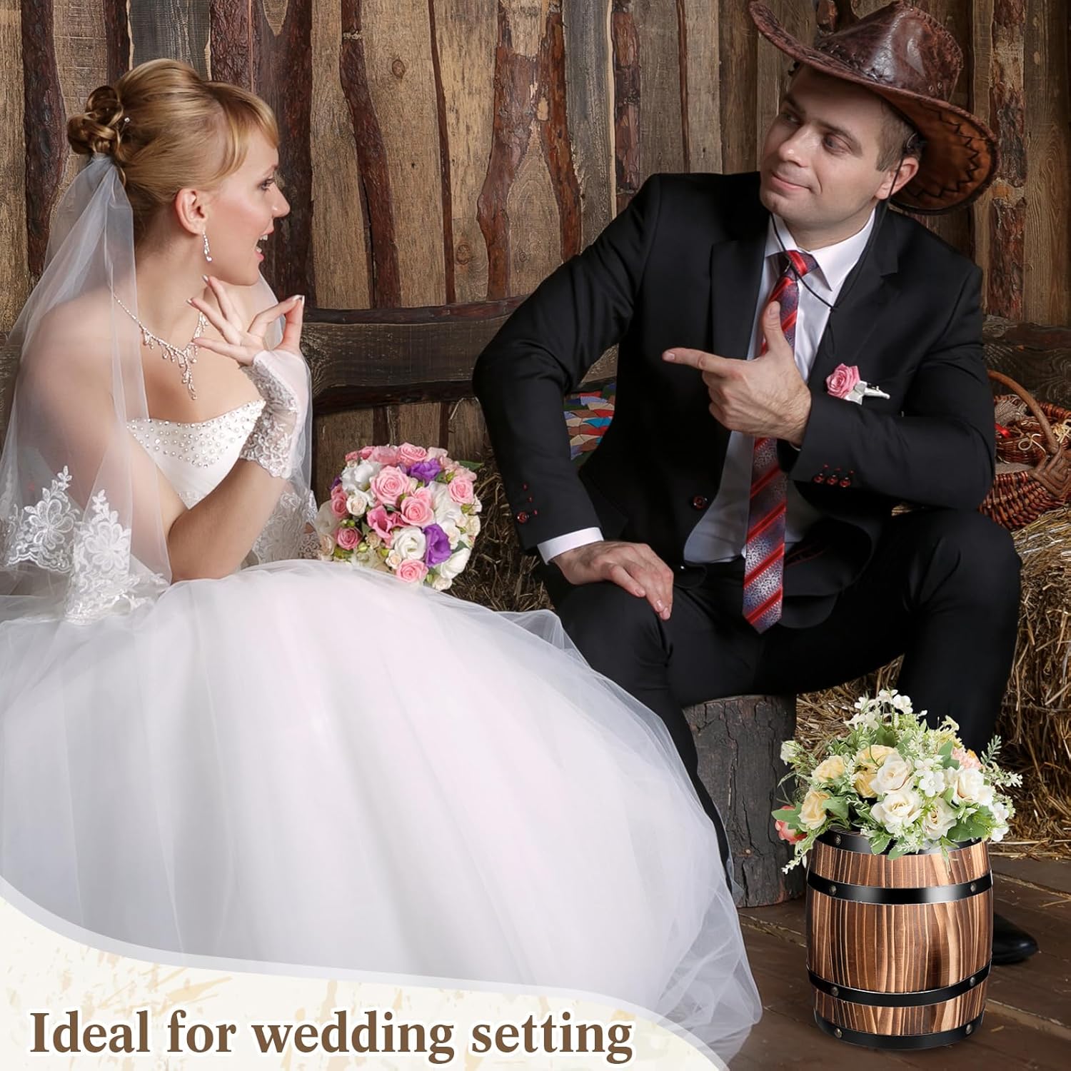 - Integrated with Rustic Charm: the barrel wood vase is a helpful yet doesn't sacrifice design for functionality; This barrel flower holder features a classic whiskey barrel look that coordinates with rustic or barn themed event, it can be applied to most occasions, giving you a cozy, natural feel, whether it's in a modern or warm atmosphere place