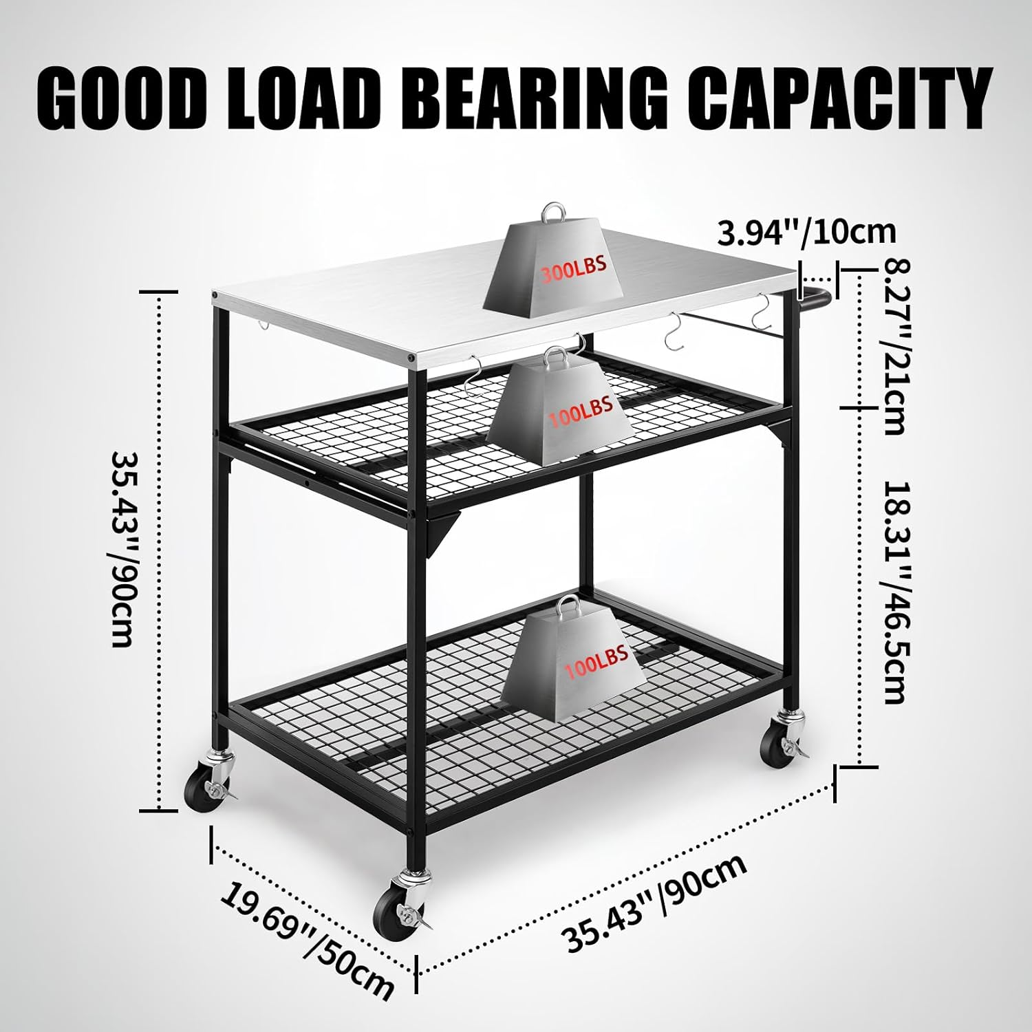 - Multifunctional Outdoor Table: The grill cart can be used indoors and outdoors.Working table cart on wheels can be used as a outdoor pizza oven table,food prep table,food serving table,kitchen cart,patio table,bar cart,BBQ grilling table,backyard cart,plants potting table,dining cart table,or workbench,tool cart etc.