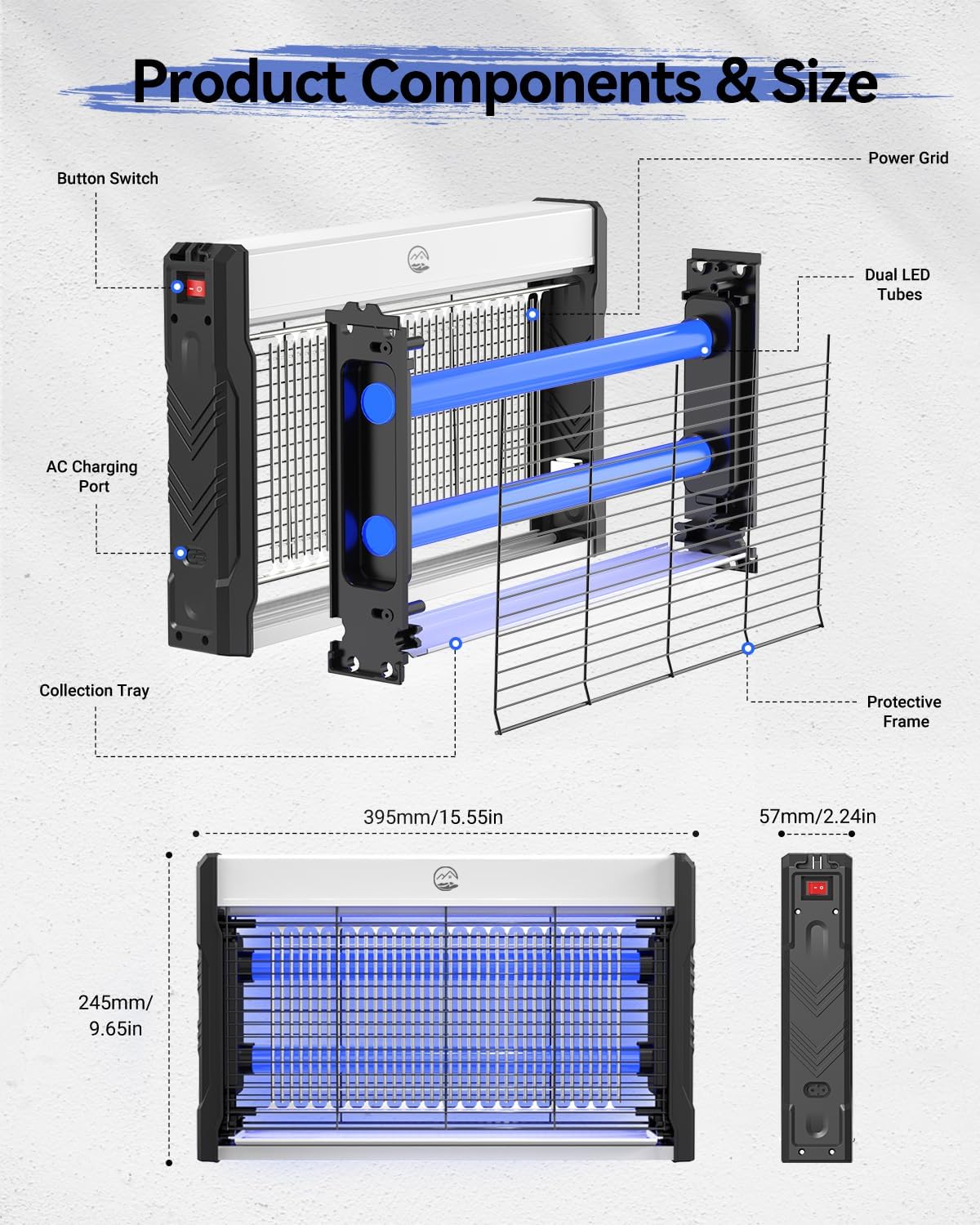 - Smart Spectrum Attraction Technology - This bug zapper features an LED light, making it easier to attract most flying insects with the lure of the LED light. Uses optimized 360-400nm UV wavelengths to attract more insect varieties. Perfect for bedrooms, kitchens, and living rooms where different pests gather.