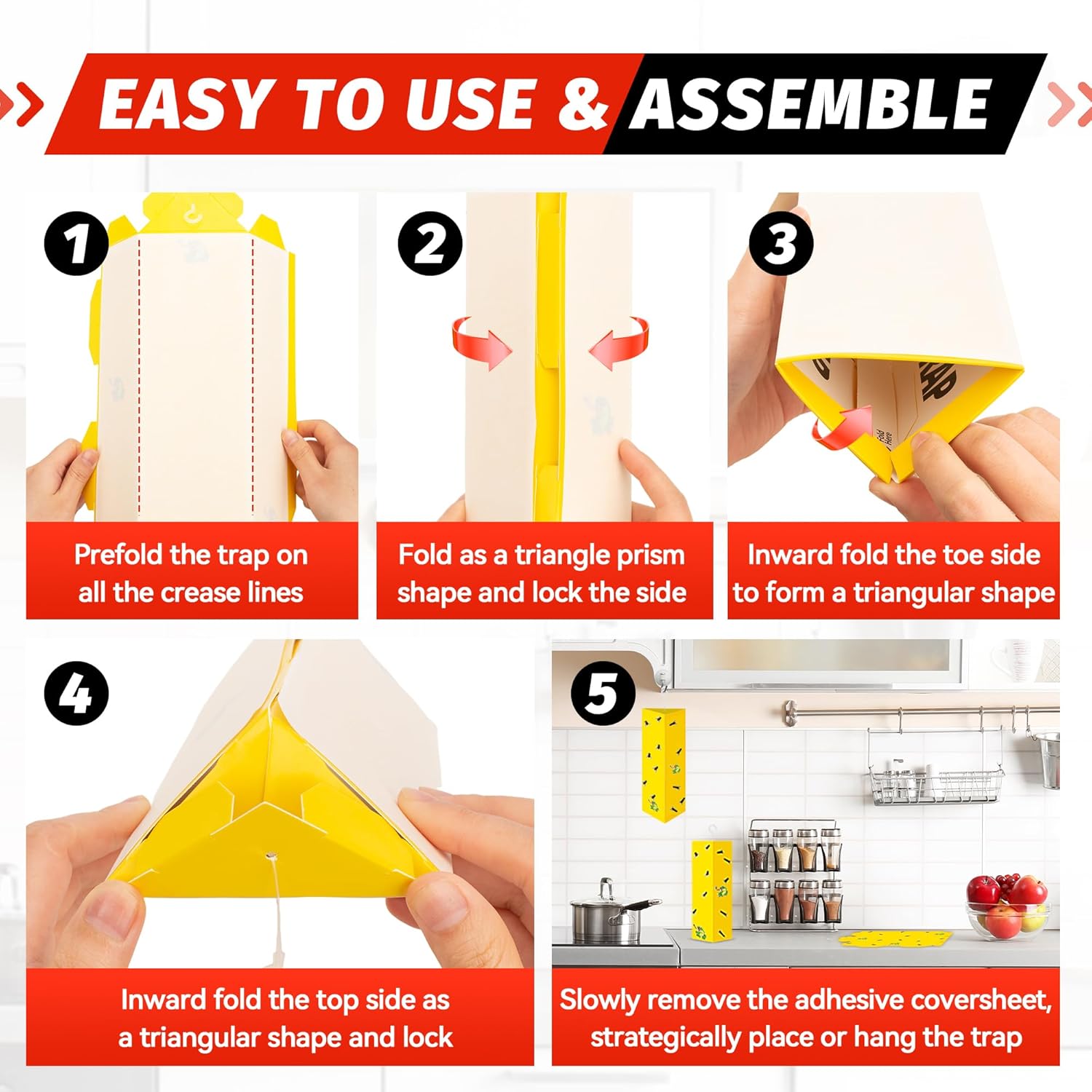 - USER FRIENDLY DESIGN: Our flea traps are easy to set up. These sticky traps come ready to use with no mess. Simply peel off the protective cover, fold them into a triangular shape and place them strategically in high infestation areas, making pest control a breeze.
