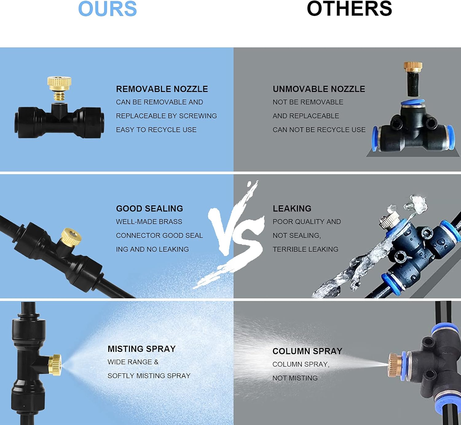 - 💧【Durable and Leak-Proof Misting Nozzles】: The Bonviee Misting System is equipped with brass misting nozzles that provide a smooth and consistent spray. These nozzles are brass to ensure long-lasting durability. The system’s no-leak design ensures optimal performance, making it perfect for misting cooling systems in backyards, patios, or greenhouses.