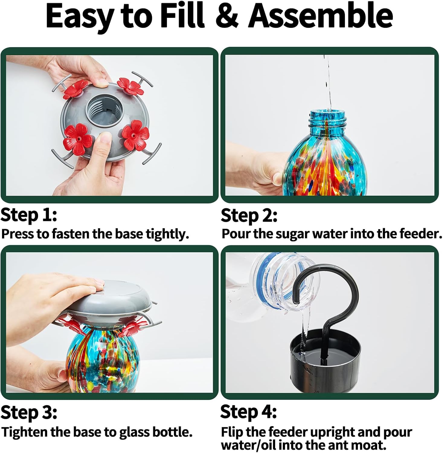 - **Exquisite Hand Blown Glass** Each glass hummingbird feeder is crafted by skilled artisans, offering a unique, elegant aesthetic that enhances your garden or patio decor.