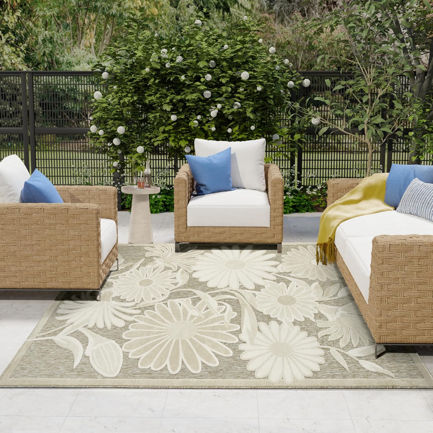 - Floral outdoor rug adds a subtle sense of depth to your space