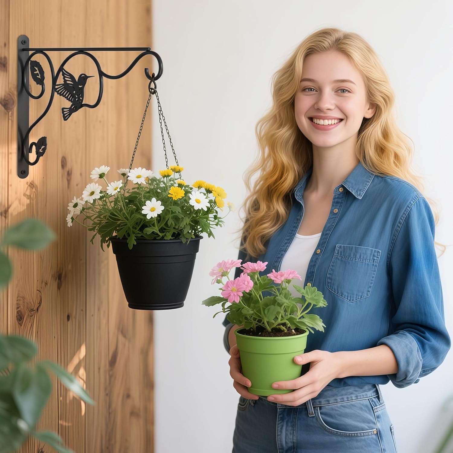 - 【Quick & Easy Installation】Weather indoor or outdoor,you just need to make two holes in the flat places like wooden fence, deck,wall of the house, then tighten the two screws to fix the wall plant hanger stably, and you can start decorating your yard at will.