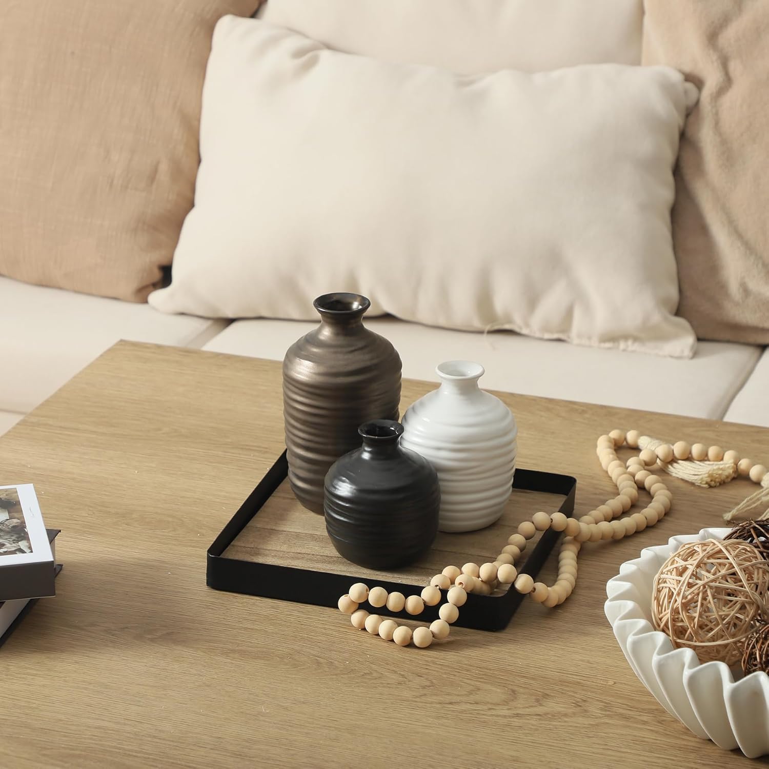 - 【Decor That Works Anywhere】With clean lines and neutral tones—black, bronze, and ivory—these vases blend beautifully with farmhouse, boho, rustic, modern, or minimalist décor. Perfect for mantels, dining tables, entryways, shelves, office desks, bathrooms, or bedrooms—wherever you need a tasteful touch.