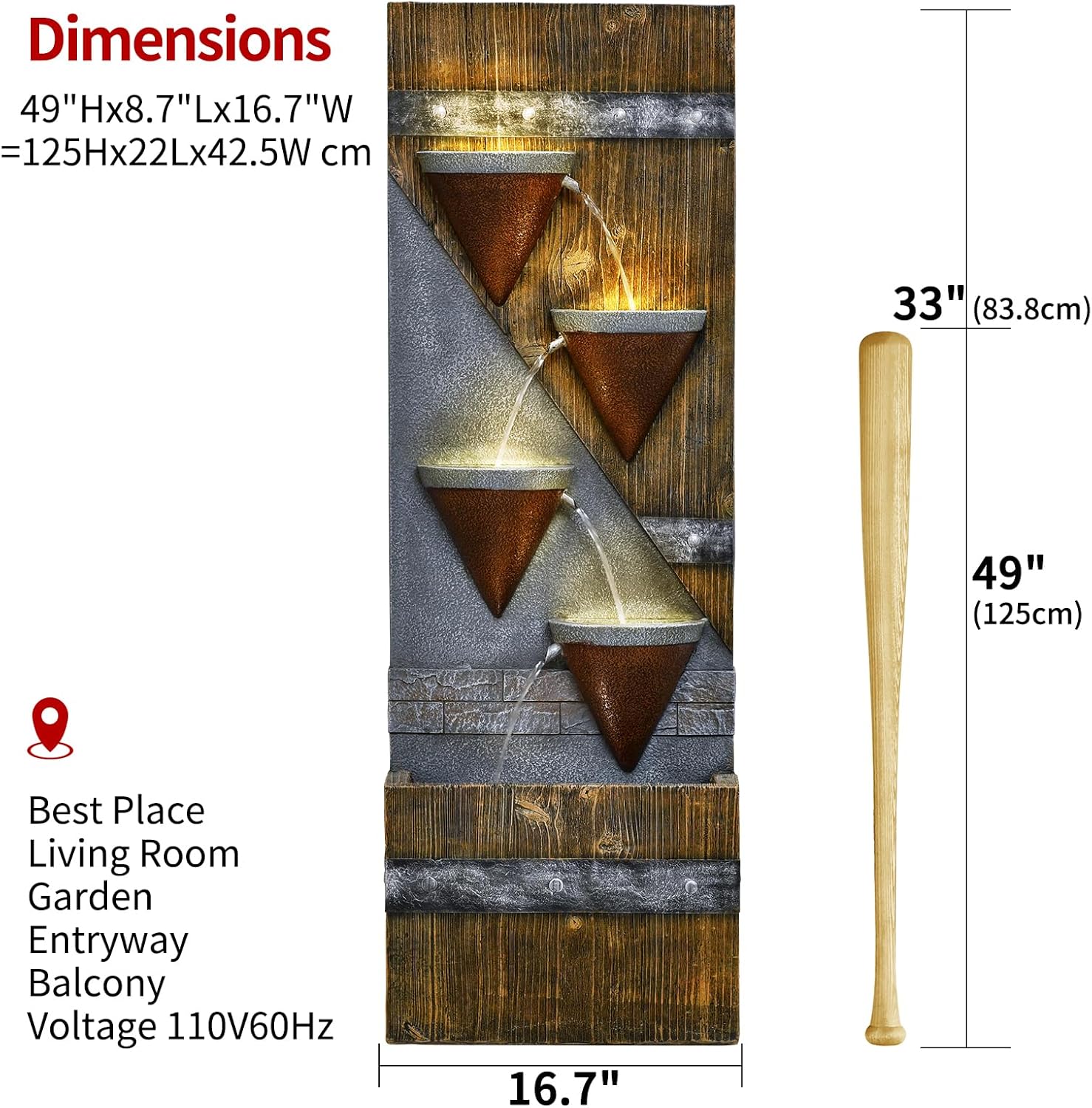 49.21" Outdoor Garden Water Fountain with Lights Floor-Standing 4 Tiers Cascading Large Waterfall Fountain for Patio, Backyard, Deck, Porch and Home Art Decor