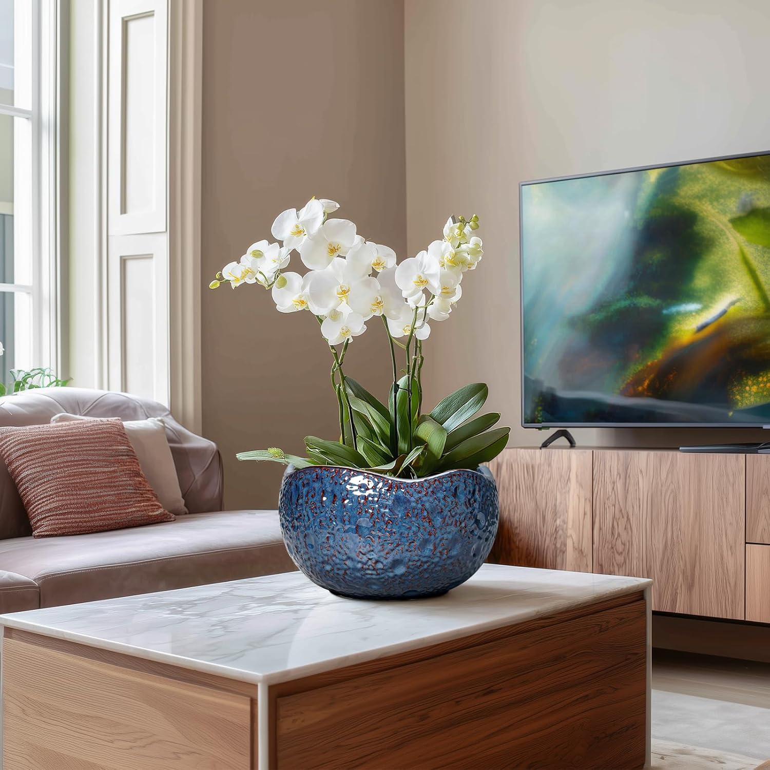 - Suitable for a variety of plants: This blue flower pot is an ideal choice for growing bonsai tree, snake plant, orchids, peace lily, pothos, money tree, zz plant, monstera, bired of paradise, fiddle leaf fig, pachira aquatica, succulent plants, cacti, aloe vera, mint, rosemary, african violet, rainlily, parsley, chrysanthemum, herbs, and other indoor & outdoor plants
