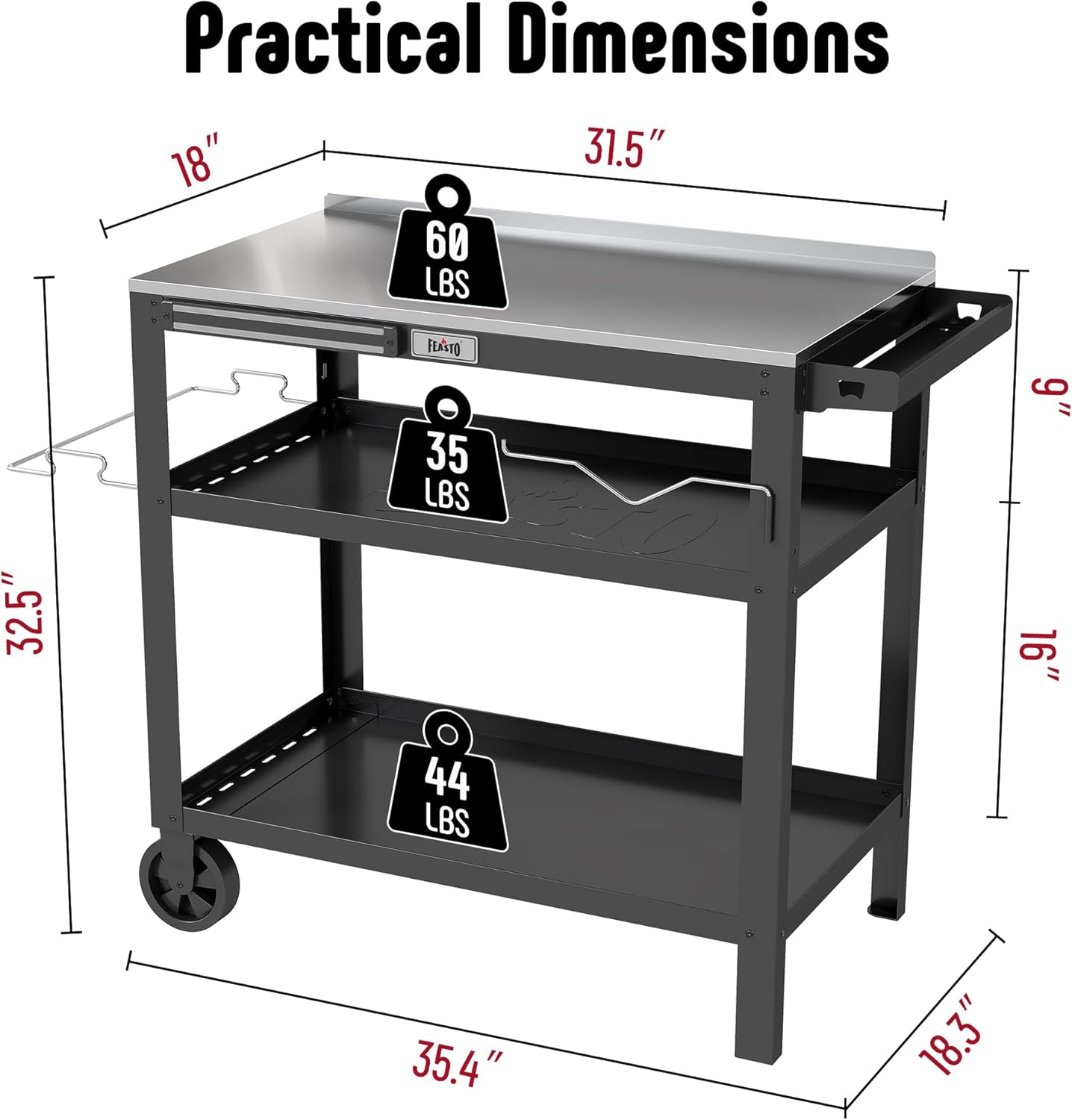 - Stainless Steel Countertop:The pizza oven table's tabletop is 31.5 x 18" , made of stainless steel, offers a generous 567 sq.in. workspace and support up to 66 lbs. Grease wipes clean in seconds, making it ideal for grill prep, pizza-oven support, or BBQ stations.